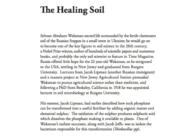 This is a book about science, culture and soil, viewed from the perspective of one family living in England in the Midlands over the past hundred years or so. In these forty short pieces key landmarks in the Life of Soil are described together with the stories behind the science. The hope is that it will stimulate a little more understanding of this most humble but vital of materials – the very earth beneath our feet!